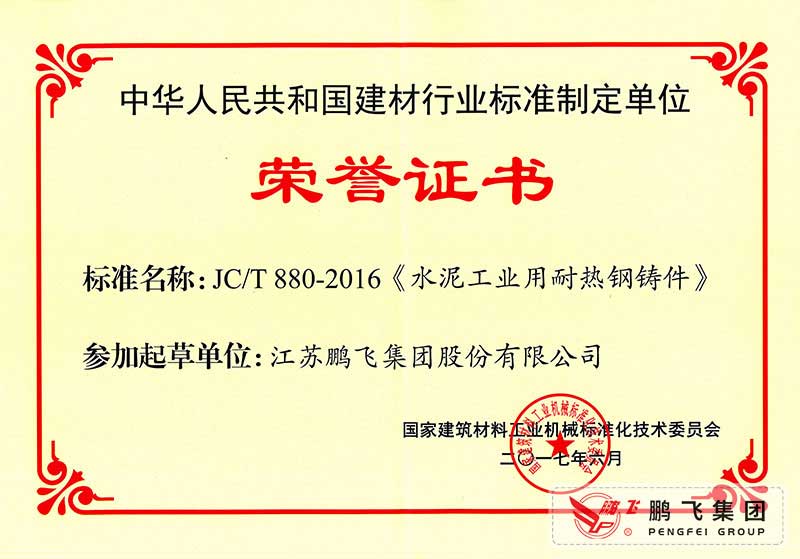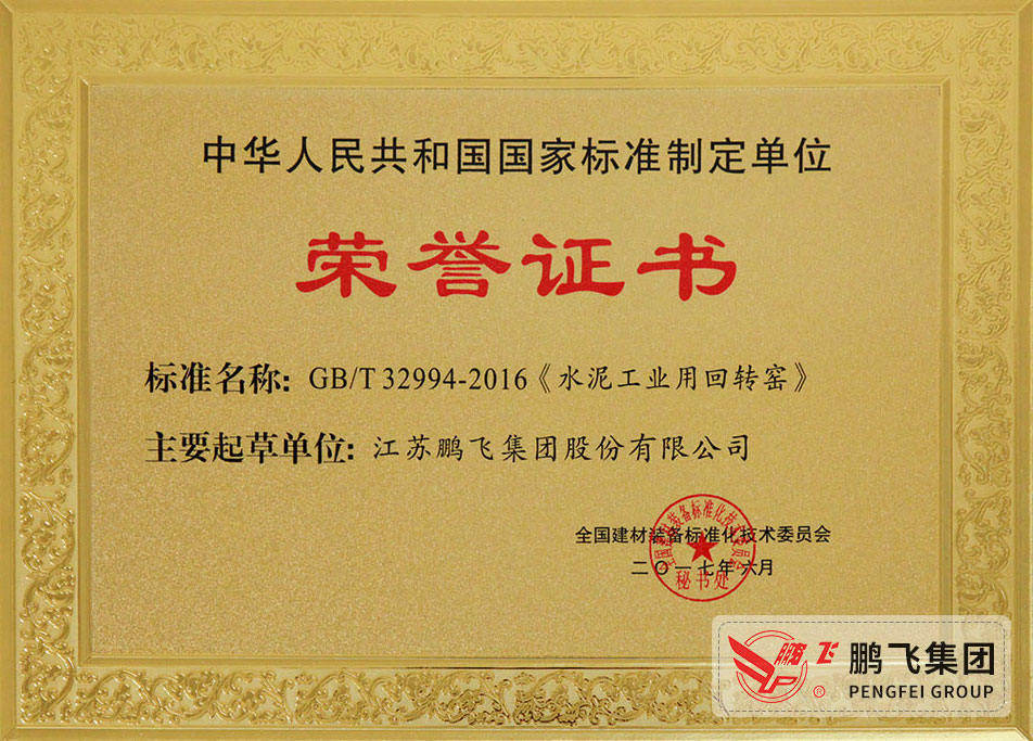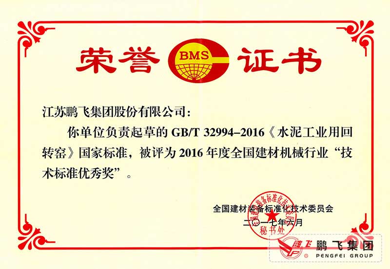 (2017年6月21)回轉(zhuǎn)窯國標起草證書技術(shù)標準優(yōu)秀獎