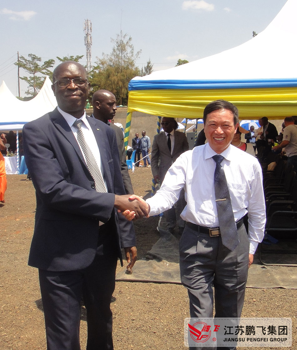 江蘇鵬飛集團(tuán)董事長、總經(jīng)理王家安陪同盧旺達(dá)總理Mr ANASTASE MUREKEEI參觀工程現(xiàn)場