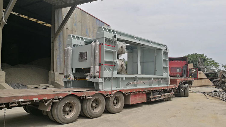 在項(xiàng)目施工現(xiàn)場鵬飛制造的PFG180-120輥壓機(jī)已進(jìn)入安裝階段。
