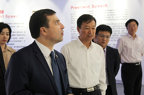 秋風(fēng)送爽,丹桂飄香。24日下午鵬飛集團(tuán)迎來了尊貴的客人——塔吉克斯坦駐中國大使達(dá)夫拉·特佐達(dá)先生一行。大使先生在海安市宣傳部領(lǐng)導(dǎo)的陪同下,參觀考察鵬飛集團(tuán)。