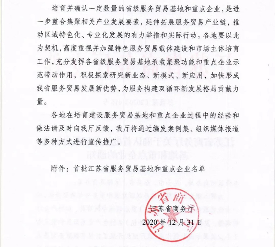 為深入推進(jìn)江蘇省服務(wù)貿(mào)易創(chuàng)新發(fā)展和服務(wù)外包轉(zhuǎn)型升級(jí),進(jìn)一步優(yōu)化服務(wù)貿(mào)易(服務(wù)外包)重點(diǎn)領(lǐng)域空間布局、加快產(chǎn)業(yè)結(jié)構(gòu)調(diào)整,發(fā)揮服務(wù)貿(mào)易(服務(wù)外包)各特色產(chǎn)業(yè)集聚區(qū)和重點(diǎn)骨干企業(yè)集聚示范引領(lǐng)作用,江蘇省商務(wù)廳組織開(kāi)展了首批省級(jí)服務(wù)貿(mào)易基地和重點(diǎn)企業(yè)遴選工作,江蘇鵬飛集團(tuán)股份有限公司獲評(píng)省首批服務(wù)貿(mào)易重點(diǎn)企業(yè)。