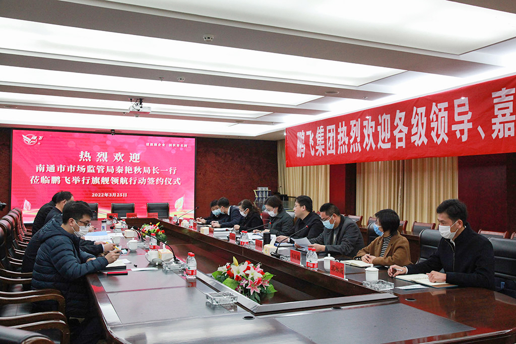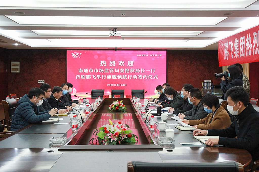 3月25日,江蘇鵬飛集團(tuán)與南通市市場監(jiān)管局、海安市市場監(jiān)管局共同簽署“旗艦領(lǐng)航”行動(dòng)三年共建協(xié)議。