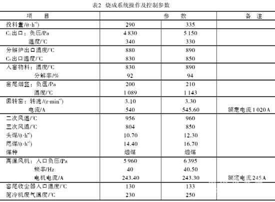 項目投產(chǎn)后,燒成系統(tǒng)的主要操作及控制參數(shù)見表2。