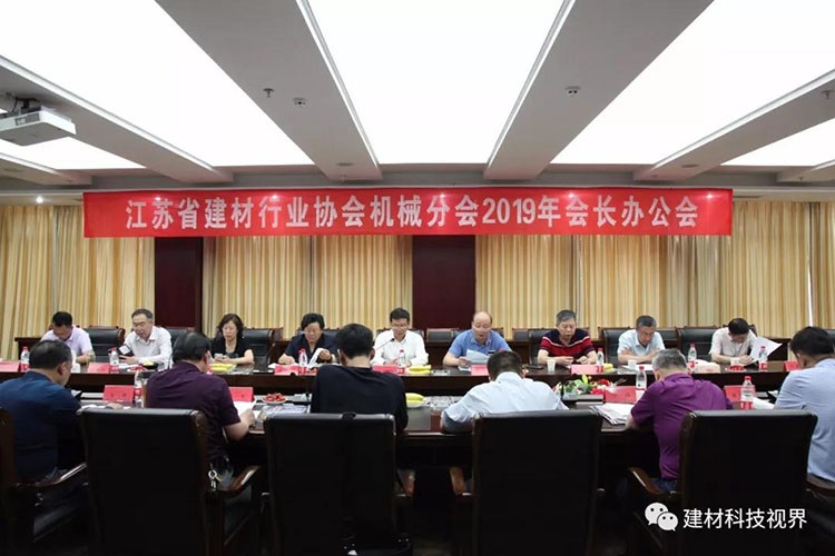 為進(jìn)一步更新思維方式,確立綠色低碳發(fā)展方向,加強(qiáng)行業(yè)自律協(xié)調(diào),促進(jìn)健康有序發(fā)展,2019年5月24日,江蘇省建材行業(yè)協(xié)會(huì)機(jī)械分會(huì)2019年會(huì)長(zhǎng)辦公會(huì)議在鵬飛集團(tuán)召開。