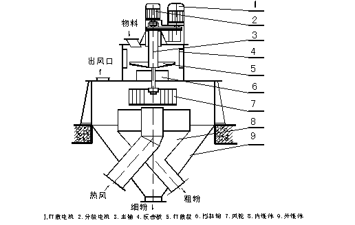 打散分級(jí)機(jī)的技術(shù)特點(diǎn)如下: