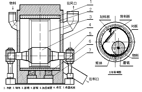 它由殼體部分、回轉(zhuǎn)部分、傳動(dòng)裝置和熱風(fēng)管等部分組成,內(nèi)部分級(jí)循環(huán)氣流由機(jī)外熱風(fēng)系統(tǒng)提供。 ,
