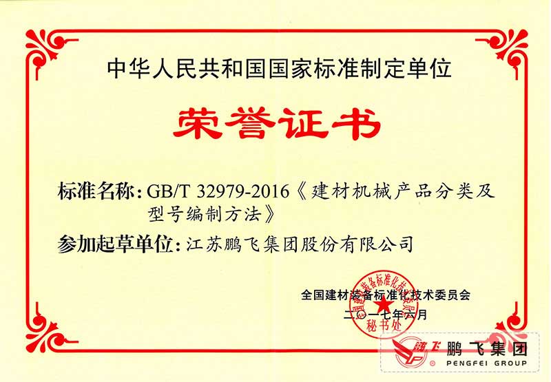 (2017年6月21)建材機械產(chǎn)品分類及型號編制方法國標起草證書