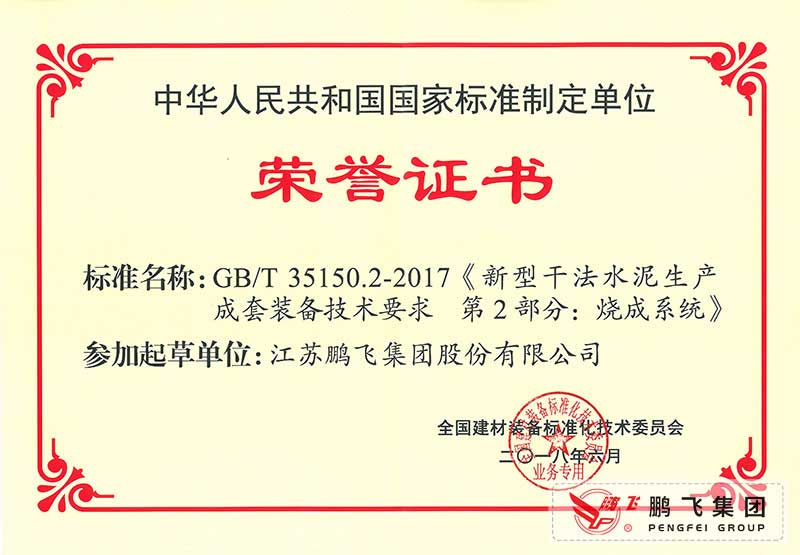 (2017年6月21)回轉(zhuǎn)窯國標起草證書