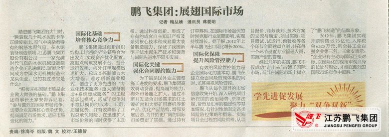 “積極開拓國際市場是企業(yè)做大做強的基礎(chǔ)。”鵬飛集團董事長王家安告訴記者,“參與激烈的國際市場競爭,需要企業(yè)發(fā)揮核心競爭優(yōu)勢,提高滿足市場需求、適應(yīng)市場變化的能力。”