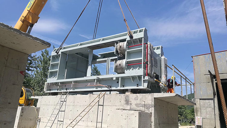 在項(xiàng)目施工現(xiàn)場鵬飛制造的PFG180-120輥壓機(jī)已進(jìn)入安裝階段。