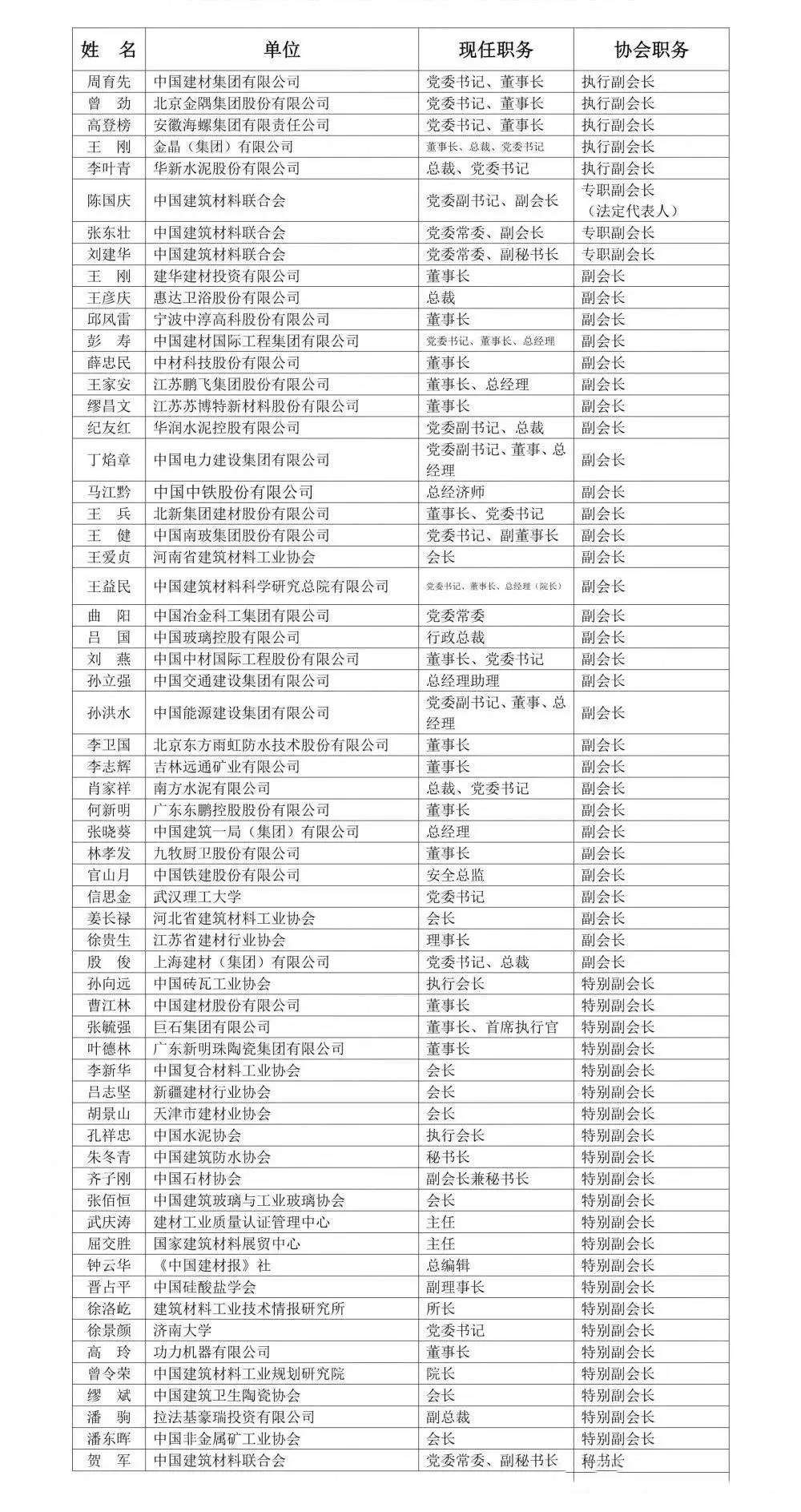 中國(guó)建筑材料聯(lián)合會(huì)第六屆理事會(huì)負(fù)責(zé)人名單