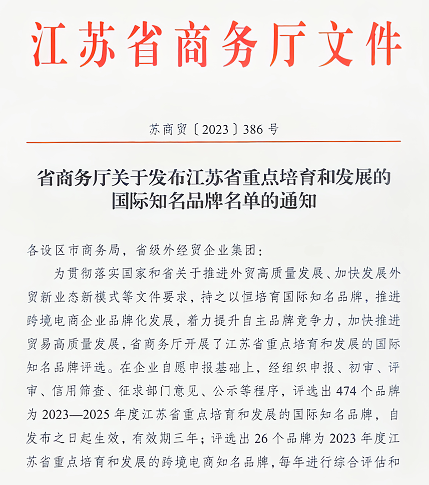 江蘇省重點培育和發(fā)展的國際知名品牌的評選是江蘇省商務(wù)廳為貫徹落實《中共江蘇省委江蘇省人民政府關(guān)于推進貿(mào)易高質(zhì)量發(fā)展的實施意見》等文件要求,持之以恒培育國際知名品牌,推進跨境電商企業(yè)品牌化發(fā)展,著力提升自主品牌競爭力,加快推進貿(mào)易高質(zhì)量發(fā)展的精神要求而組織實施。