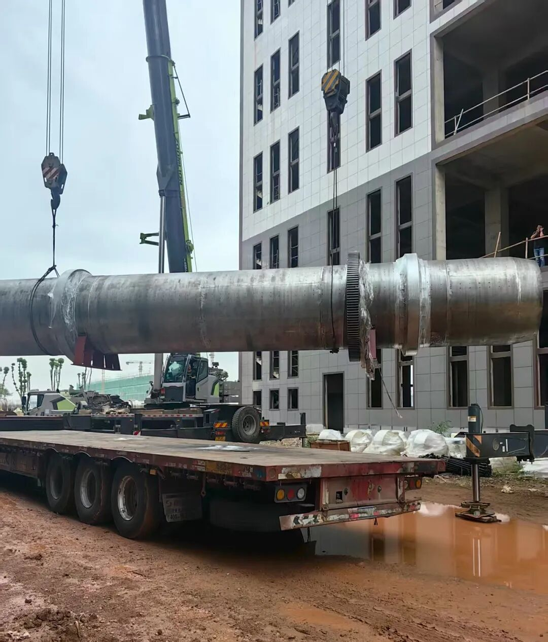 近日,中新開(kāi)維綠色食品產(chǎn)業(yè)園項(xiàng)目迎來(lái)重大進(jìn)展—隨著三臺(tái)總重達(dá)108噸的“巨無(wú)霸”回轉(zhuǎn)窯炒菜鍋在兩臺(tái)吊車(chē)精準(zhǔn)牽引下緩緩上樓就位,中新開(kāi)維綠色食品產(chǎn)業(yè)園15