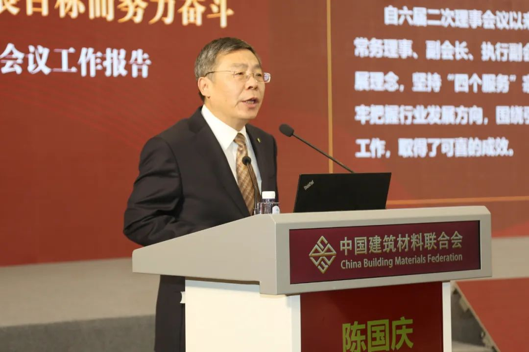 受會長閻曉峰委托,陳國慶代表中國建筑材料聯(lián)合會六屆理事會作題為《堅持綠色低碳安全高質(zhì)量發(fā)展 堅持“四個服務”工作定位 為實現(xiàn)“宜業(yè)尚品、造福人類”行業(yè)發(fā)展目標而努力奮斗》的工作報告。報告回顧了聯(lián)合會近一年來的工作情況,分析了面臨的形勢任務,提出了下一步工作思路舉措。